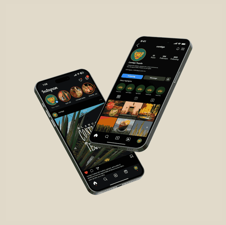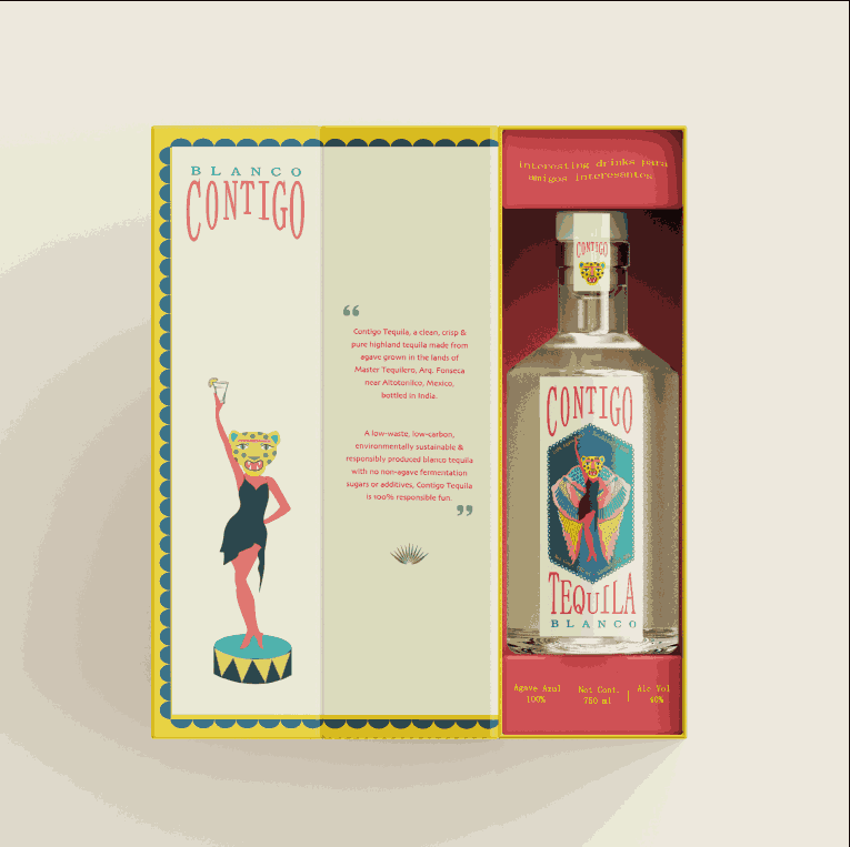 Contigo is a premium tequila that celebrates the connection between two vibrant cultures. The name means "with you" in Spanish—a promise of togetherness that resonates across borders. We created a brand that honors Mexican tequila-making traditions while embracing India's colorful celebration culture, resulting in a spirit that brings people together through shared moments of joy.